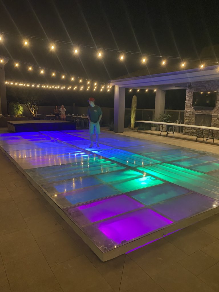 This last weekend in Scottsdale, SAT Dive Team members of Stage Commander added another flawless job to their portfolio working underwater building an all-plexiglass pool cover. In addition to the pool cover, they also assembled an all-black cover for the spa. The cover was used to host the dancefloor of a wedding and the cover over the spa was used for a platform for the DJ. Once again, another overly satisfied client in the Phoenix valley for pool cover services.